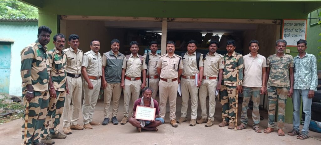 ಹನೂರು :- : ಅರಣ್ಯ ಇಲಾಖೆಯ ಮೇಲಾಧಿಕಾರಿಗಳ ಆದೇಶದ ಮೇರೆಗೆ ಹೊಸಳ್ಳಿ ಗ್ರಾಮದ 40 ವರ್ಷ ನಾಗರಾಜ್ ಬಿನ್ ನಾಗಬೋವಿ ಎಂಬುವವರು ಹಸುಗಳನ್ನು ಮೇಯಿಸುತ್ತಿದ್ದಾಗ ನಾಯಿಗಳ ದಾಳಿಗೆ ಜಿಂಕೆ ಬಲಿಯಾಗಿತ್ತು. ಬಲಿಯಾಗಿರುವ ಗಂಡು ಜಿಂಕೆಯ ಮಾಂಸವನ್ನು ಬೇರ್ಪಡಿಸುವ ವೇಳೆ ಆರೋಪಿ ನಾಗರಾಜು ಅರಣ್ಯ ಇಲಾಖೆ ಅಧಿಕಾರಿಗಳಿಗೆ ಸಿಕ್ಕಿಬಿದ್ದಿದ್ದಾನೆ.ಕೌದಳ್ಳಿ ವನ್ಯಜೀವಿ ವಲಯದ ಉತ್ತೇಬಾವಿ ಅರಣ್ಯ ಪ್ರದೇಶದಲ್ಲಿ ಒಂದು ಗಂಡು ಜಿಂಕೆಯನ್ನು ಹತ್ಯಾ ಮಾಡಿರುವ ಬಗ್ಗೆ ವನ್ಯಜೀವಿ ಸಂರಕ್ಷಣೆ ಕಾಯ್ದೆ 1972 ಉಲ್ಲಂಘನೆ ಸಂಬಂಧ ಆರೋಪಿಯನ್ನು ಬಂಧಿಸಿ ನ್ಯಾಯಾಂಗ ಬಂಧನಕ್ಕೆ ಒಪ್ಪಿಸಲಾಯಿತು. ಈ ಸಂದರ್ಭದಲ್ಲಿ ವಲಯ ಅರಣ್ಯ ಅಧಿಕಾರಿ ಲೋಕೇಶ್ ಚವ್ಹಾಣ್, ಉಪ ವಲಯ ಅರಣ್ಯ ಅಧಿಕಾರಿ ಸಮೀರ್ ಭಗವನ್, ಗಸ್ತು ವನಪಾಲಕರಾದ ಮಲ್ಲಿಕಾರ್ಜುನ್, ಶೇಖರಯ್ಯ, ಸದಾಶಿವ, ಶಿವರಾಜ್, ಇನ್ನಿತರರು ಇದ್ದರು.