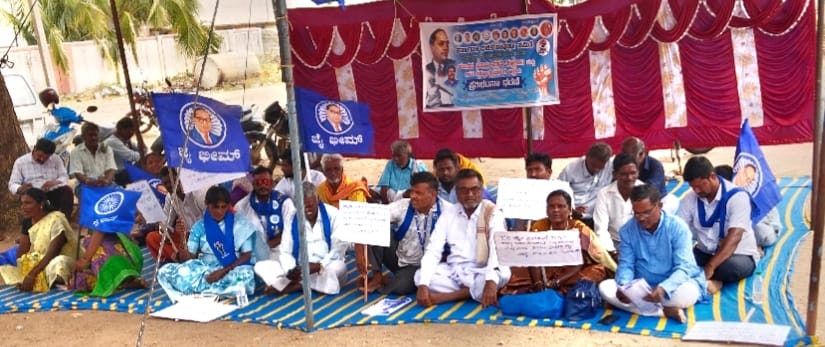 ಹನೂರು :- ಪರಿಶಿಷ್ಟ ಜಾತಿ ಹಾಗೂ ಪರಿಶಿಷ್ಟ ವರ್ಗ ಭೂ ಹೀನ ತಳ ಸಮುದಾಯಗಳು ಉಳುಮೆ ಮಾಡುತ್ತಿರುವ ಬಗರ್ ಹುಕಂ ಸಾಗುವಳಿಯನ್ನು ಕಾಲಮಿತಿಯೊಳಗೆ ಇತ್ಯಾರ್ಥಗೊಳಿಸಬೇಕು ಎಂದು ಕರ್ನಾಟಕ ದಲಿತ ಸಂಘರ್ಷ ಸಮಿತಿಯ ರಾಜ್ಯ ಪ್ರಧಾನ ಸಂಚಾಲಕ ಸಿದ್ದರಾಜು ದೊಡ್ಡಿಂದುವಾಡಿ ಹೇಳಿದರು.ಪಟ್ಟಣದ ತಾಲೋಕು ಆಡಳಿತ ಕಚೇರಿ ಬಳಿ ಪ್ರತಿಭಟನೆ ನಡೆಸಿ ಸರ್ಕಾರಕ್ಕೆ ಒತ್ತಾಯಿಸಿ ಶಿರಸ್ತೆದಾರ್ ನಾಗೇಂದ್ರ ಅವರಿಗೆ ಮನವಿ ಪತ್ರ ಸಲ್ಲಿಸಿ ಮಾತನಾಡಿದರು. ತಾಲೂಕಿನಲ್ಲಿ ಬಗರ್ ಹುಕಂ ಸಾಗುವಳಿ ಮಾಡುತ್ತಿರುವ ದಲಿತರನ್ನು ಅರಣ್ಯ ಭೂಮಿ, ಸಾಮಾಜಿಕ ಅರಣ್ಯ ಕರಣ, ಗೋವುಗಳ ಗೋಮಾಳಗಳಿಗೆ ಕಾಯ್ದಿರಿಸುವ ನೆಪದಲ್ಲಿ ಒಕ್ಕಲಎಬ್ಬಿಸುವುದನ್ನು ಖಂಡಿಸಿ ಹಾಗೂ ದಲಿತರಿಗೆ ಮಂಜೂರಾಗಿರುವ ಭೂಮಿಯನ್ನು ಸರ್ಕಾರಗಳು ಕೈಗಾರಿಕೆಗಳ ಸ್ಥಾಪನೆಗಾಗಿ ವಿದೇಶಿ ಬಂಡವಾಳಗಾರರಿಗೆ ಭೂಮಿ ಕೊಡುತ್ತಿರುವುದರಿಂದ ದಲಿತರನ್ನು ಸಂಪೂರ್ಣವಾಗಿ ಭೂಮಿಯಿಂದ ಹೊರದಬ್ಬುವ ಕುತಂತ್ರವಾಗಿದೆ. ಈ ಬಗ್ಗೆ ಸರ್ಕಾರವನ್ನು ಎಚ್ಚರಿಸಲು ಇಂದು ಪ್ರಥಮ ಹಂತವಾಗಿ ಭೂಮಿ ಮಂಜೂರಾತಿಗಾಗಿ ಆಗ್ರಹಿಸಿ ಪ್ರತಿಭಟನೆ ಧರಣಿ ಹಮ್ಮಿಕೊಳ್ಳಲಾಗಿದೆ ಎಂದರು. ಹಕ್ಕೋತ್ತಾಯಗಳು : ಬಗರ್ ಹುಕಂ ಸಾಗುವಳಿ ಕಾಲ ಮಿತಿಯೊಳಗೆ ಇತ್ಯರ್ಥಗೊಳಿಸಬೇಕು. ಪರಿಶಿಷ್ಟರ ಪಿ.ಟಿ. ಸಿ.ಎಲ್ ಕಾಯ್ದೆಗೆ ರಾಜ್ಯ ಸರ್ಕಾರ ತಂದಿರುವ ತಿದ್ದುಪಡಿಯನ್ನು ಮಾನ್ಯ ಮಾಡಬೇಕು. ಸುಳ್ವಾಡಿ ವಿಷ ಪ್ರಸಾದ ದುರಂತದಲ್ಲಿ ಮೃತಪಟ್ಟಿರುವ ಮತ್ತು ಅಶ್ವಸ್ಥರಾಗಿರುವ ಕುಟುಂಬಗಳಿಗೆ ವಸತಿ ಮತ್ತು ಜಮೀನನ್ನು ಶೀಘ್ರವಾಗಿ ಮಂಜೂರು ಮಾಡಬೇಕು ಸಮಾಜ ಕಲ್ಯಾಣ ಇಲಾಖೆಯ ಅಡಿಯಲ್ಲಿರುವ ವಿದ್ಯಾರ್ಥಿ ನಿಲಯಗಳನ್ನು ಉನ್ನತೀಕರಣ ಗೊಳಿಸಬೇಕೆಂದು,ಹಾಗೂ ಇನ್ನಿತರ ಮನವಿಗಳನ್ನು ಸಲ್ಲಿಸಲಾಯಿತು.ಸುಳ್ವಾಡಿ ಸಂತ್ರಸ್ತರಿಗೆ ನಿವೇಶನ ನೀಡಿ : ಸುಳ್ವಾಡಿ ವಿಷ ಪ್ರಸಾದ ದುರಂತದಲ್ಲಿ ಮಡಿದ ಸಂಬಂಧಿಕರಿಗೆ ನಿವೇಶನ ನೀಡಲು ಮುಂದಾಗಿದ್ದು ಆದಷ್ಟು ಬೇಗ ಅದು ಅರ್ಹ ಫಲಾನುಭವಿಗೆ ತಲುಪಬೇಕು ಎಂದು ಒತ್ತಾಯ ಮಾಡಿದರು. ಇದೆ ಸಂದರ್ಭದಲ್ಲಿ ಬೈರಾನತ್ತ ಮಾದೇಶ್, ಮಾರಿಯಪ್ಪ, ವೇಲುಸ್ವಾಮಿ, ಮುರುಗೇಶ್, ಮುರುಗನ್, ಮಾದೇಶ್, ಶಿವಣ್ಣ, ನಾಗರಾಜು, ಜೈ ಗಣೇಶ್, ವೀರಪ್ಪ, ರಾಮಲಿಂಗಮ್o ಅನೇಕ ಮಹಿಳೆಯರು ಸ್ಥಳದಲ್ಲಿದ್ದರು.