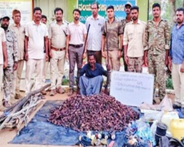 ಕೊಳ್ಳೇಗಾಲ :- ನಕ್ಷತ್ರ ಆಮೆಯನ್ನು ಸಾಗಣೆ ಮಾಡುತ್ತಿದ್ದ ಆರೋಪಿಯನ್ನು ಕೊಳ್ಳೇಗಾಲ ತಾಲೂಕಿನ ಮಧುವನಹಳ್ಳಿ ಗ್ರಾಮದ ಬೈಪಾಸ್ ರಸ್ತೆಯಲ್ಲಿ ಕೊಳ್ಳೇಗಾಲದ ಪಟ್ಟಣದ ಅರಣ್ಯ ಸಂಚಾರ ದಳದ ಪೊಲೀಸರು ಬಂಧಿಸಿ, ಆಮೆಯನ್ನು ರಕ್ಷಣೆ ಮಾಡಿದ್ದಾರೆ. ಹನೂರು ತಾಲೂಕಿನ ಪುದೂರು ಗ್ರಾಮದ ನಿವಾಸಿ ನಾಗರಾಜು(35) ಬಂಧಿತ ಆರೋಪಿ. ಈತ ಮಲೆ ಮಹದೇಶ್ವರ ಬೆಟ್ಟದಲ್ಲಿ ಸೆಕ್ಯೂರಿಟಿ ಗಾರ್ಡ್ ಆಗಿ ಕೆಲಸ ನಿರ್ವಹಿಸುತ್ತಿದ್ದನು. ಮಧುವನಹಳ್ಳಿ ಗ್ರಾಮದ ರಸ್ತೆಯಲ್ಲಿ ಬೆಂಗಳೂರು ಕಡೆಗೆ ಒಂದು ನಕ್ಷತ್ರ ಆಮೆಯನ್ನು ಸಾಗಣೆ ಮಾಡುತ್ತಿದ್ದಾನೆ ಎಂಬ ಖಚಿತ ಮಾಹಿತಿ ಮೇರೆಗೆ ಅರಣ್ಯ ಸಂಚಾರ ದಳದ ಪೊಲೀಸರು ದಾಳಿ ನಡೆಸಿ ಆರೋಪಿಯನ್ನು ಬಂಧಿಸಿದರು.