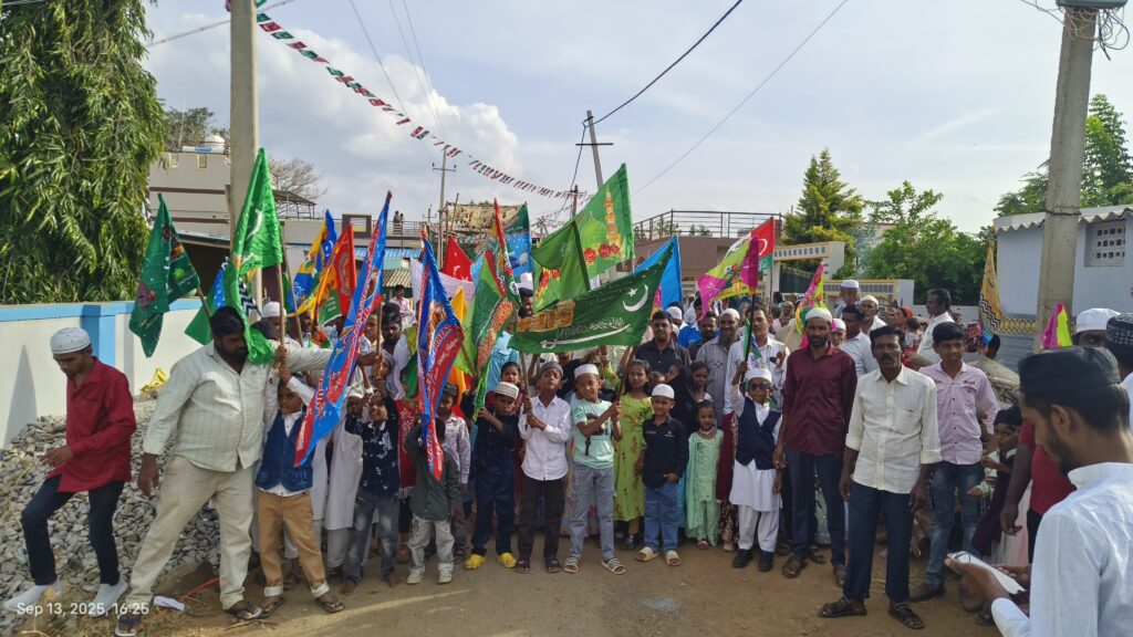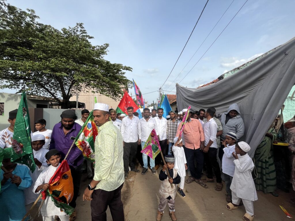ಬೆಳಿಗ್ಗೆ ಮಸೀದಿಯಲ್ಲಿ ಪುರುಷರು ವಿಶೇಷ ಪ್ರಾರ್ಥನೆ ಸಲ್ಲಿಸಿದರು. ನಂತರ ಪರಸ್ಪರ ಶುಭಾಶಯ ವಿನಿಮಯ ಮಾಡಿಕೊಂಡರು. ನಂತರ ಗ್ರಾಮದ ಮಸೀದಿಯಲ್ಲಿ ಮುಸ್ಲಿಮರು ಆಟೊ, ಮೇಲೆ ಮೆಕ್ಕಾ ಮದೀನಾ, ಪ್ರತಿಕೃತಿ ಇರಿಸಿ ಮೆರವಣಿಗೆ ಮಾಡಲಾಯಿತು.