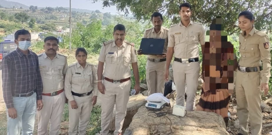 ಹನೂರು :- ತಾಲೂಕಿನ ಮಲೆಮಹದೇಶ್ವರ ಬೆಟ್ಟ ಸಮೀಪದ ನಾಗಮಲೆಗೆ ತೆರಳುವ ರಸ್ತೆಯಲ್ಲಿ ಶುಕ್ರವಾರ ಅಕ್ರಮವಾಗಿ ಗಾಂಜಾ ಮಾರಾಟ ಮಾಡುತ್ತಿದ್ದ ಮಹಿಳೆಯೊಬ್ಬರನ್ನು ಪೊಲೀಸರು ಬಂಧಿಸಿದ್ದಾರೆ.ಮ.ಬೆಟ್ಟ ಸಮೀಪದ ಕೀರನಹೊಲ ಗ್ರಾಮದ ಭಾಗ್ಯ ಎಂಬುವರೇ ಬಂಧಿತ ಆರೋಪಿ. ಈಕೆ ಮನೆಯ ಮುಂಭಾಗದ ನಾಗಮಲೆಗೆ ಸಂಪರ್ಕ ಕಲ್ಪಿಸುವ ರಸ್ತೆಯಲ್ಲಿ ಅಕ್ರಮವಾಗಿ, ಸಾರ್ವಜನಿಕರಿಗೆ ಒಕಿ ಗಾಂಜಾವನ್ನು ಮಾರಾಟ ಮಾಡುತ್ತಿದ್ದರು. ಈ ಬಗ್ಗೆ ದೊರೆತ ಖಚಿತ ಮಾಹಿತಿ ಮೇರೆಗೆ ಡಿವೈಎಸ್ಪಿ ಧರ್ಮೇಂದ್ರ ಅವರ ಮಾರ್ಗದರ್ಶನದಲ್ಲಿ ಇನ್ಪೆಕ್ಟರ್ ಜಗಧೀಶ್ ಹಾಗೂ ಸಿಬ್ಬಂದಿ ತಂಡ ದಾಳಿ ನಡೆಸಿ ಪರಿಶೀಲಿಸಿದಾಗ ಬ್ಯಾಗ್ನಲ್ಲಿ ಗಾಂಜಾ ಮಾರಾಟ ಮಾಡುತ್ತಿರುವುದು ದೃಢಪಟ್ಟಿದೆ. 230 ಗ್ರಾಂ ಒಕ ಗಾಂಜಾವನ್ನು ವಶಕ್ಕೆ ಪಡೆದ ಪೊಲೀಸರು ಆರೋಪಿಯನ್ನು ಬಂಧಿಸಿ ನ್ಯಾಯಾಂಗ ಬಂಧನಕ್ಕೆ ನೀಡಿದ್ದಾರೆ.